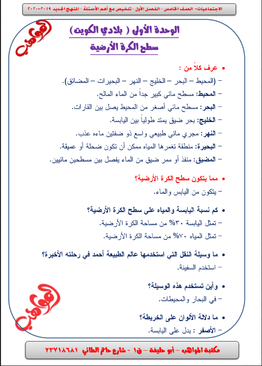 اسئلة اجتماعيات للصف الخامس الفصل الاول