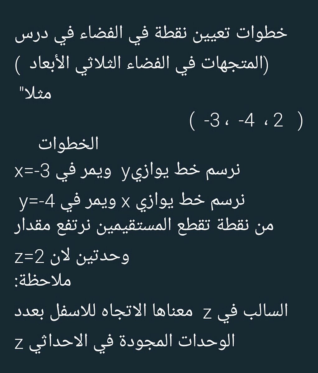 المتجهات في الفضاء الثلاثي الابعاد. الفضاء ثلاثي الأبعاد هو نموذج هندسي فراغي من ثلاثة متغيرات يمثل فيه الكون الفيزيائي والذي توجد فيه معظم الأشكال المعروفة للمادة. حاليا تطبق الفضاءات المتجهية في الرياضيات والعلوم والهندسة حيث تشكلن البنية الجبرية الملائمة لدراسة أنظمة المعادلات الخطية وت شكلن أيضا الإطار العام لدراسة متسلسلات فورييه اللائي يستعملن بدورهن في ضغط الصور ولتقنيات حلحلة المعادلات التفاضلية الجزئية. بحث وشرح درس المتجهات في الفضاء الثلاثي الابعاد ثالث ثانوي الفصل الدراسي الثاني وحل اسئلة كتاب التمارين وتحقق من فهمك وتحميل الملزمة واوراق العمل رياضيات ثالث ثانوي الفصل الدراسي الثاني وفيديوهات افضل المعلمين على يوتيوب. المتجهات في الفضاء الثلاثي الأبعاد 7 5 الضرب الداخلي والضرب الاتجاهي للمتجهات في الفضاء.