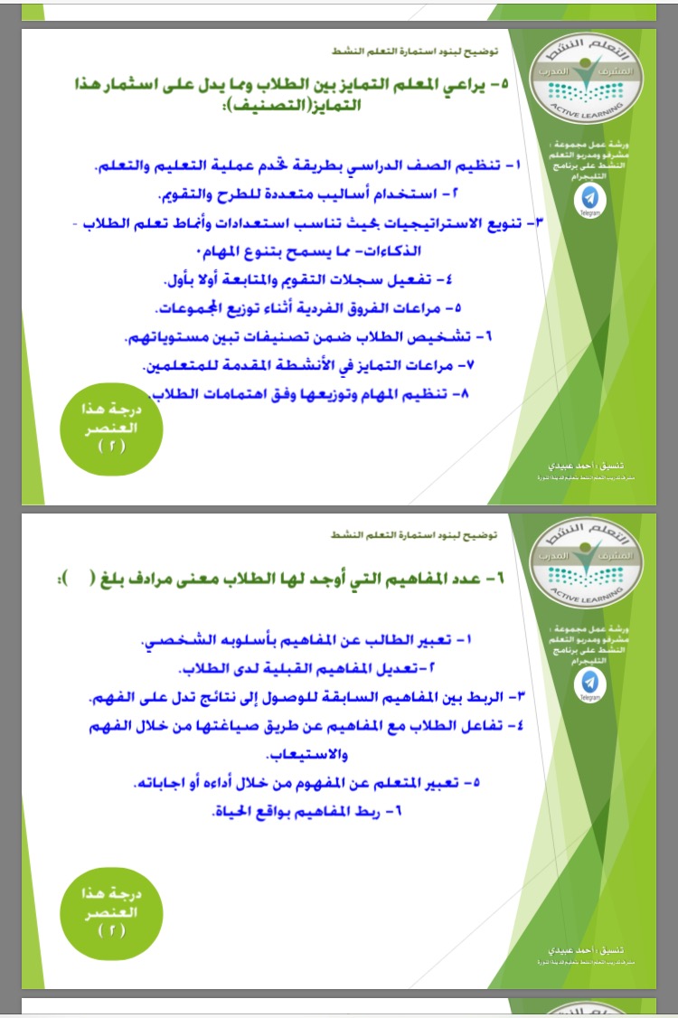 بطاقة التعلم النشط الجديدة. مهارات النجاح للتنمية البشرية 5 894 views. خلال التعلم النشط يصل المتعلمون إلى حلول ذات معنى مألوفة لديهم. شرح بطاقة التعلم النشط الاصدار السادس 1440 هـ 2019 م عرض مباشر لبطاقة التعليم النشط ٦. 2 لكي تعتمد وترصد بالنظام لا بد من تحقيق بنودها كاملة بدرجة 105 كحد أدنى من أصل 130 نقطة وممكن للمشرف أن يعطيك بطاقة بدرجات أقل وهي دليل أنك تطبق التعلم النشط لكنها لا ترصد في النظام.