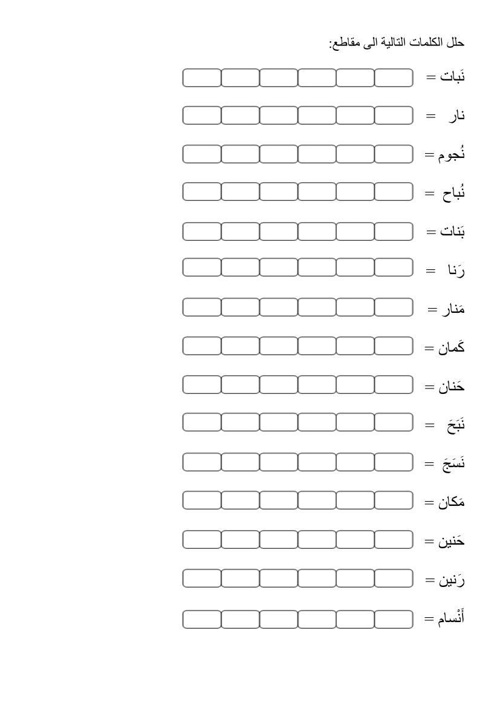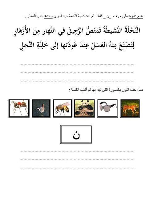 الحرف الناقص حرف النون اللغة العربية اوراق عمل