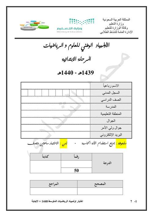 توزيع رياضيات متوسط 1439