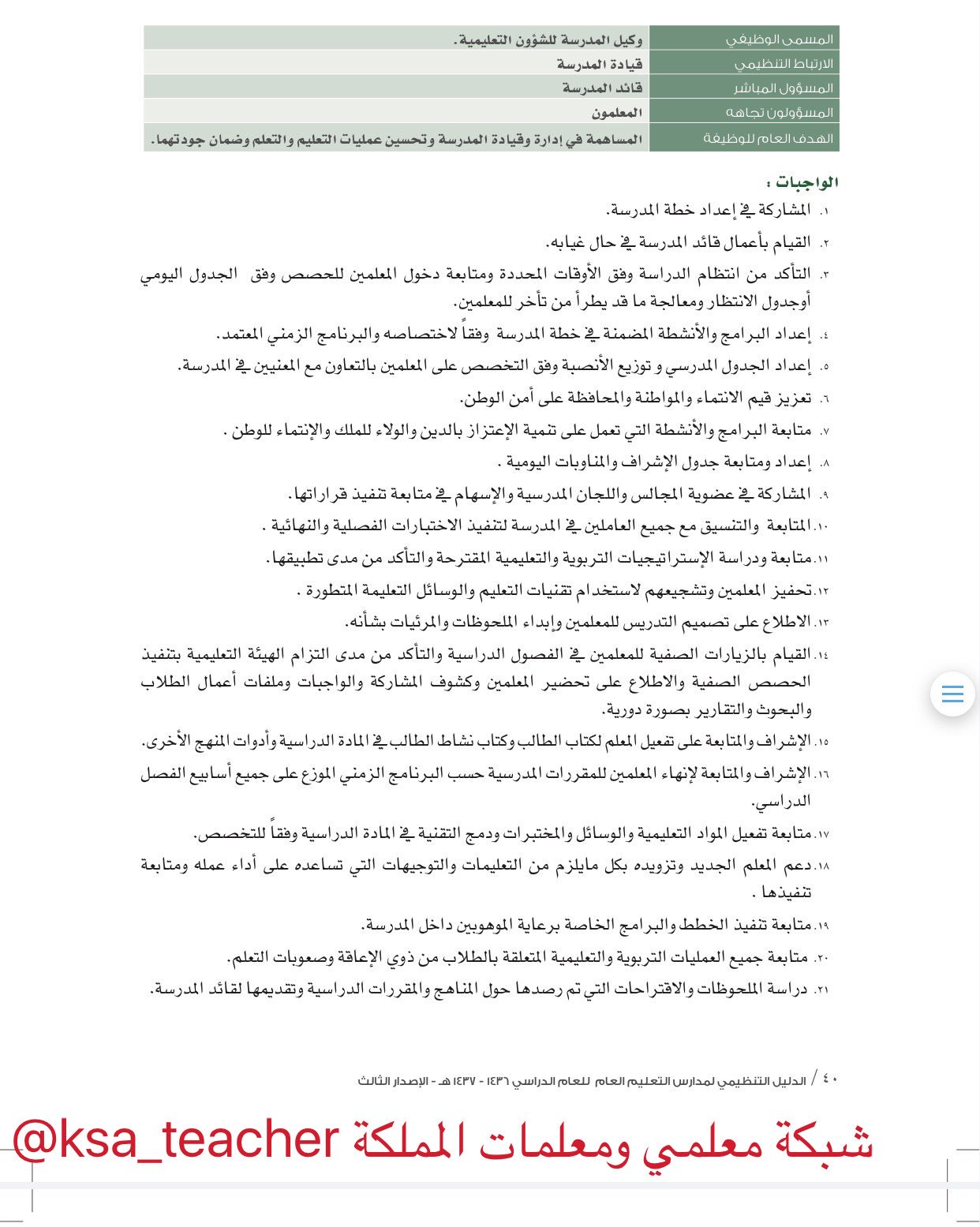 المهام المشاركة في إعداد الخطة العامة للمدرسة. إعداد الجداول المدرسية التي تنظم العمل في المدرسة بمشاركة وكيل شؤون الطلاب التأكد من انتظام الدراسة وفق الأوقات المحددة. الخطة العامة لوكيل المدرسة الفصل الأول لعام 1438 هـ. السلام عليكم ورحمة الله وبركاته خطة وكيلة شؤون المعلمات خطة وكيلة الشؤون التعليمية للفصل الثاني لعام 1440هـ التحميل من المرفقات.