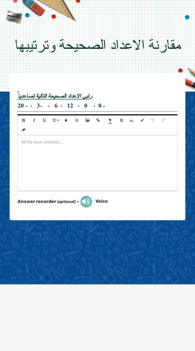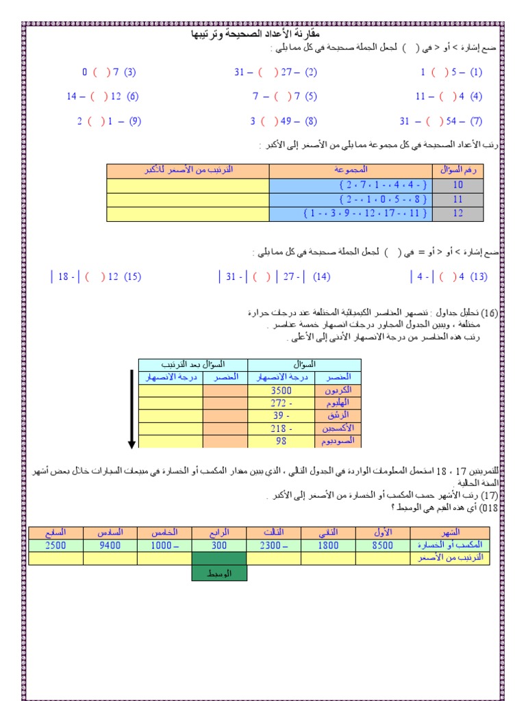 مقارنة الاعداد الصحيحة وترتيبها