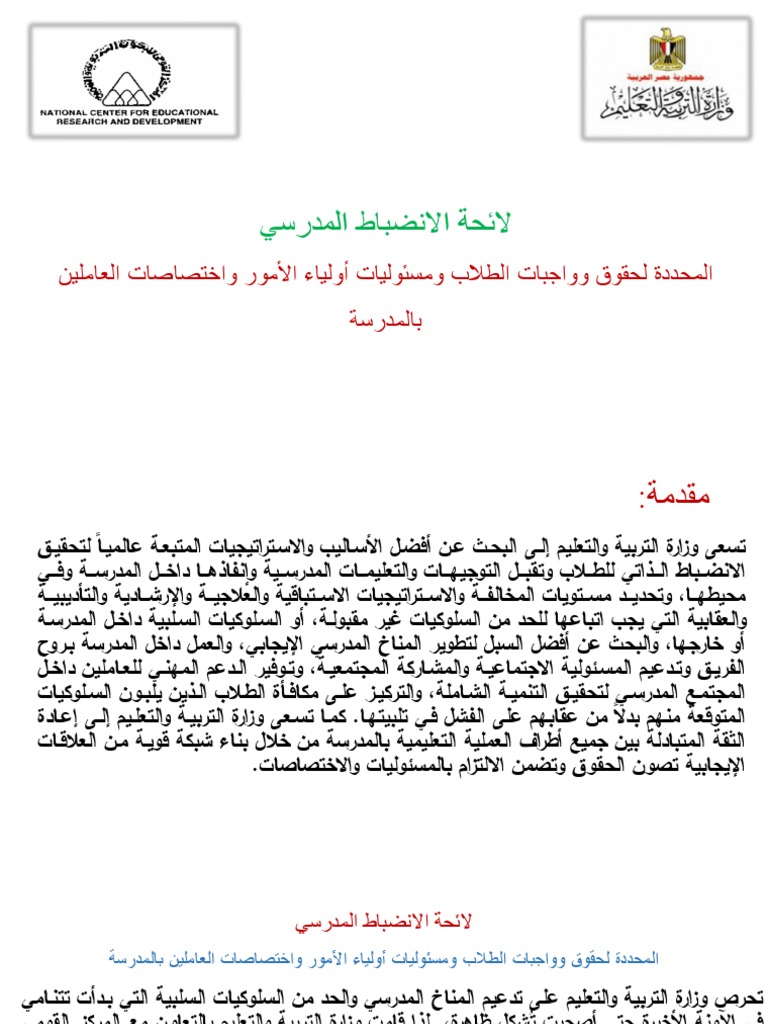 مقدمة عن الانضباط المدرسي. موضوع عن الانضباط المدرسي كامل بالعناصر معني الانظباط. الإنضباط المدرسي وأهميته كريم منصور العامري. مقدمة إذاعية عن الانضباط المدرسي وعدم الغياب. مقدمة اذاعة مدرسية عن الانضباط المدرسي وعدم الغياب.